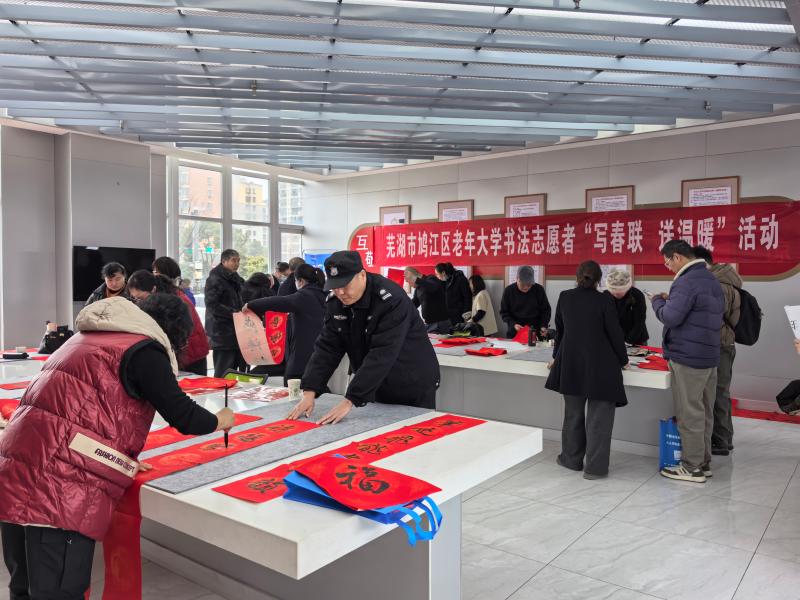 鳩江年味正濃,服務暖心相伴!區政務服務中心專屬新春福利暖心上線,1月26日上午“墨香迎新年 揮毫寫福聯”首場活動溫情啟幕。紅紙鋪展、墨香四溢,書法老師們現場揮毫潑墨,在一筆一畫間流淌鳩茲文脈,為辦事群眾定制專屬的福字與春聯,把獨屬于江城鳩江的年味,實實在在帶回家。
