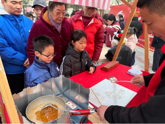 活動現場,數張長桌依次排開,紅紙鋪展,墨香撲鼻。來自社區及街道的書法愛好者與特邀書法老師揮毫潑墨,筆走龍蛇。一副副承載著吉祥寓意與美好祝愿的春聯、一個個飽滿有力的“福”字在他們筆下誕生,引得居民們連連稱贊、爭相領取。“這手寫的春聯就是有年味!比印刷的更有感覺,貼在門上喜慶又大氣。”捧著墨跡未干春聯的李阿姨笑容滿面地說道。活動不僅贈送春聯福字,還設置了趣味剪紙、新春知識問答等互動環節,讓居民尤其是青少年在參與中感受中華優秀傳統文化的獨特魅力。
