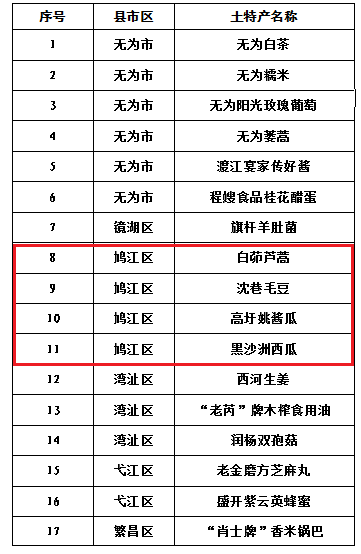 日前,蕪湖市農業農村局官網公示了第二批蕪湖市鄉村“土特產”入選名單,其中,鳩江區白茆蘆蒿、沈巷毛豆、高圩姚醬瓜、黑沙洲西瓜產品榜上有名。